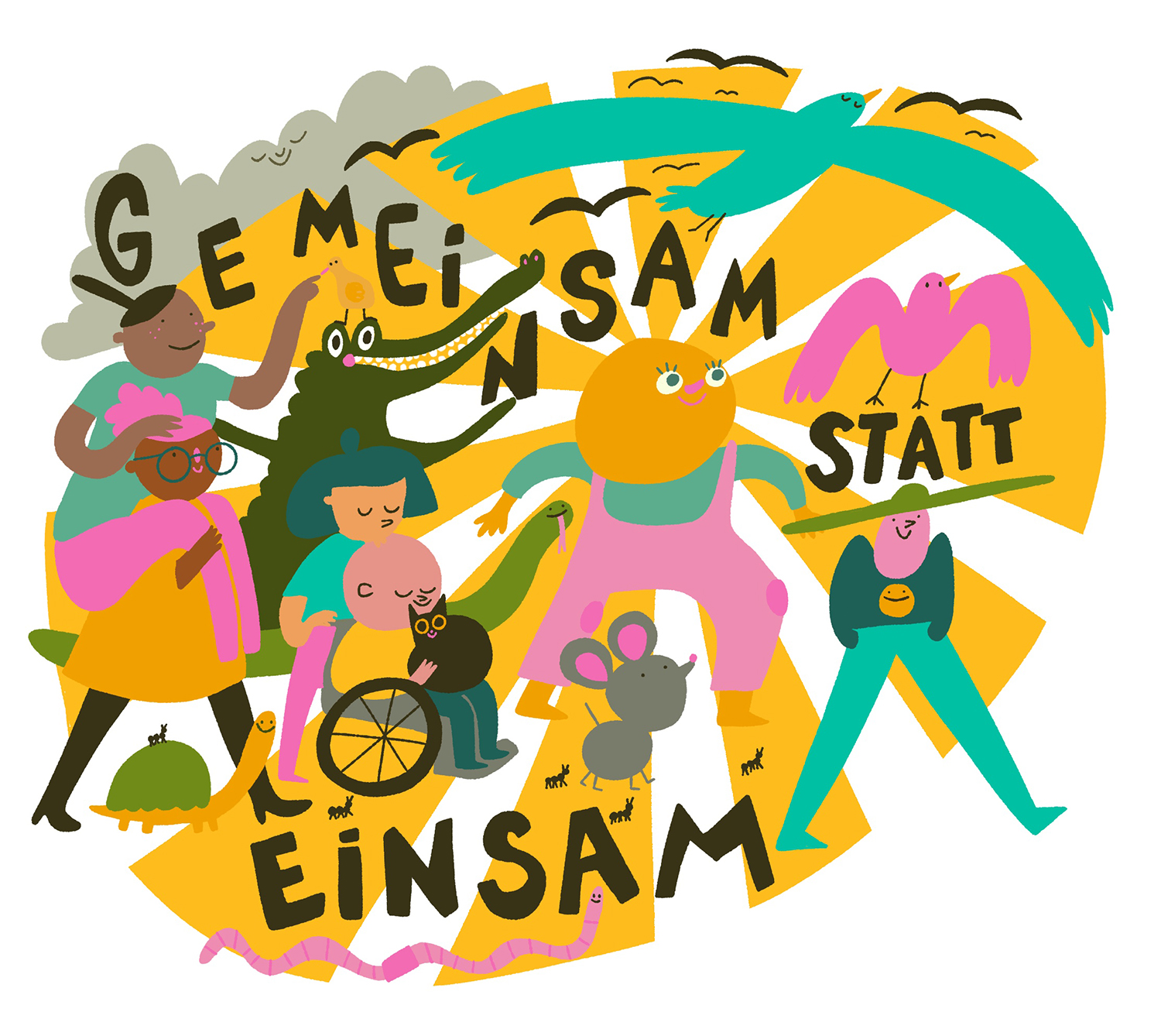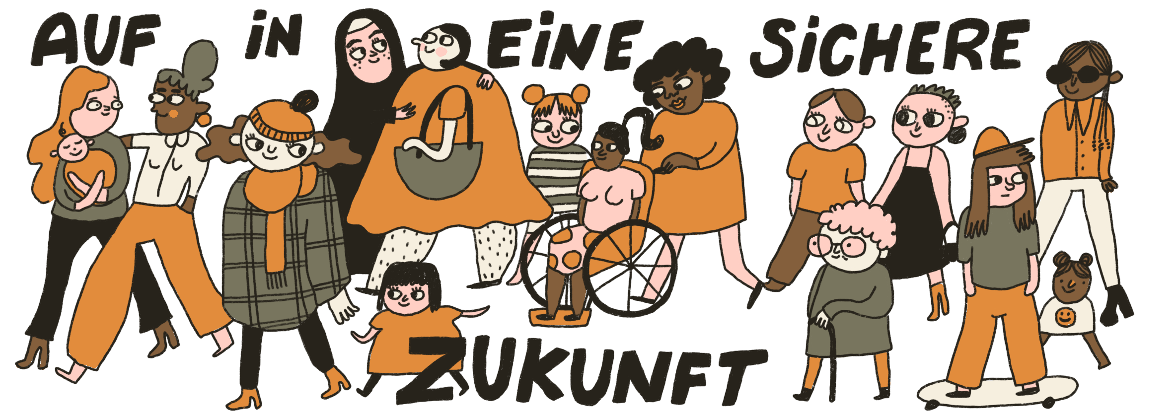 Ausstellung „Hello Happiness“, Hygienemuseum Dresden.Illustrationen für die Website des Frauenschutzzentrum Lüneburg.Newsletter „Kaltland Report“ von ezraNeue Narrative #10„So geht Sächsisch, kulturdigital“ mit Agi MalachDachverband der autonomen Frauenberatungsstellen NRW